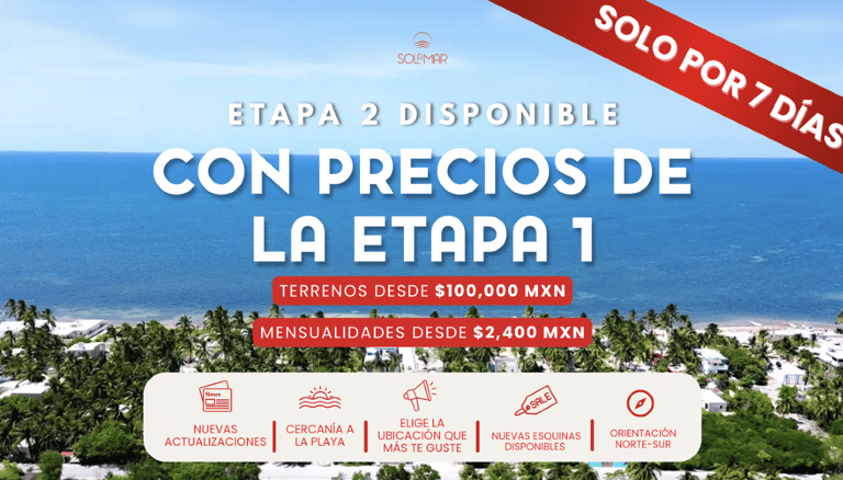 Solamar ofrece terrenos desde $112,350 MXN, a menos de 1 hora de Mérida y cerca de cenotes, playas vírgenes y zonas arqueológicas.